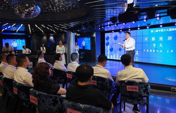 常昊在邮轮上为中国少儿围棋邮轮邀请赛致辞。章昊豪 摄 据常昊介绍,本届中国少儿围棋邮轮邀请赛全程在爱达·魔都号上举行,近2000名棋手和家长报名参加活动,赛事分3天进行,共7轮,预计对局数逾5000局。整个航程历时5天4夜,从上海出发,途经韩国济州、日本福冈。